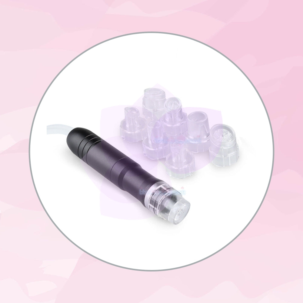 Utiliza el modo de succión al vacío controlado por un proceso inteligente, a través de la combinación de productos y equipos para mejorar la textura de la piel. Utiliza puntas de hidroexfoliación específicamente diseñadas que exfolian suavemente la piel mediante un movimiento de alisado dermatológico. Las puntas en espiral permiten que los SERUMS duren más tiempo en la piel, mientras que los bordes en espiral están diseñados para empujar los sueros más profundamente en la piel, produciendo un efecto terso.